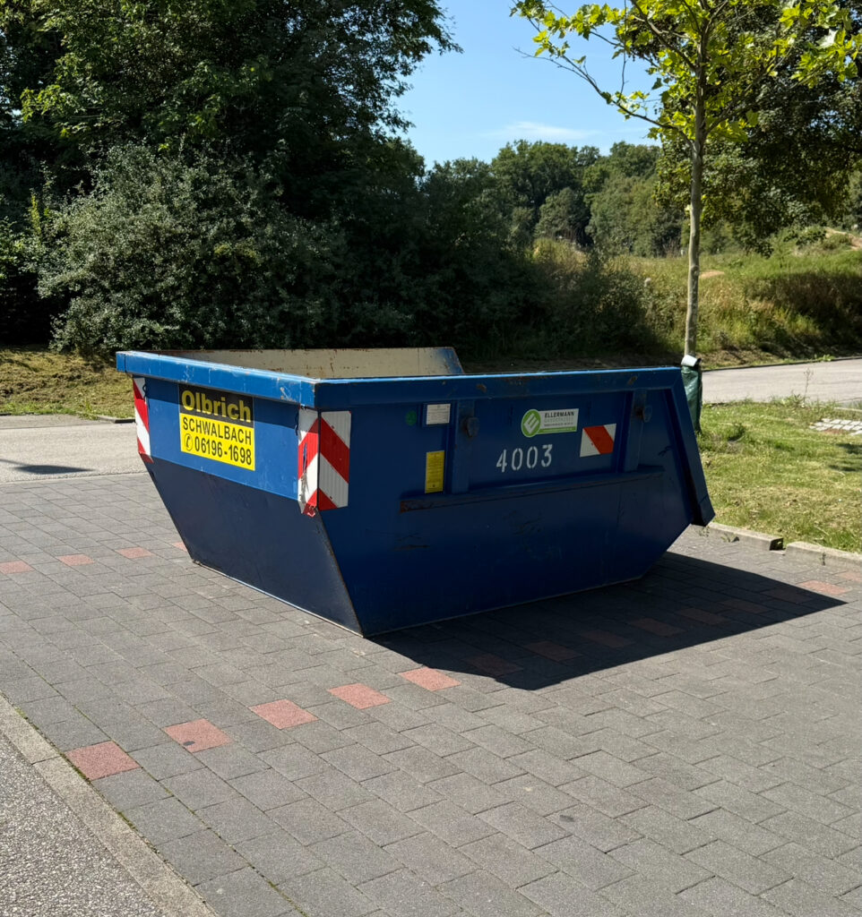 Unser 4m³-Container mit niedriger Ladekante ist perfekt für das einladen schwerer Einzelstücke. Auch Schubkarren kann man mühelos ansetzen und z.B. Bodenaushub aus Beeten einfüllen.